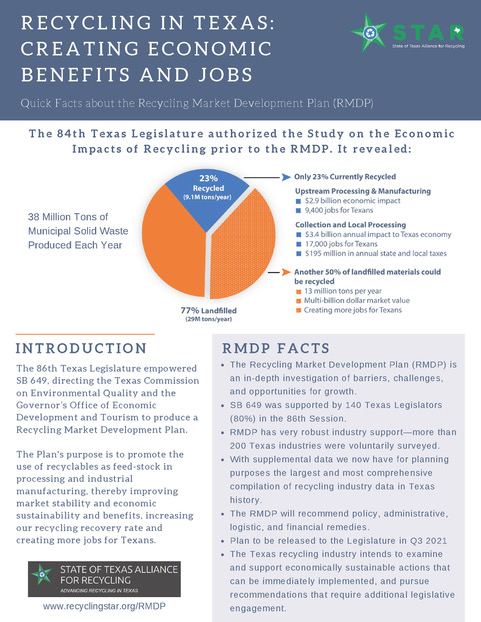 Flyer — State of Texas Alliance for Recycling Mailer Sent to State Legislators